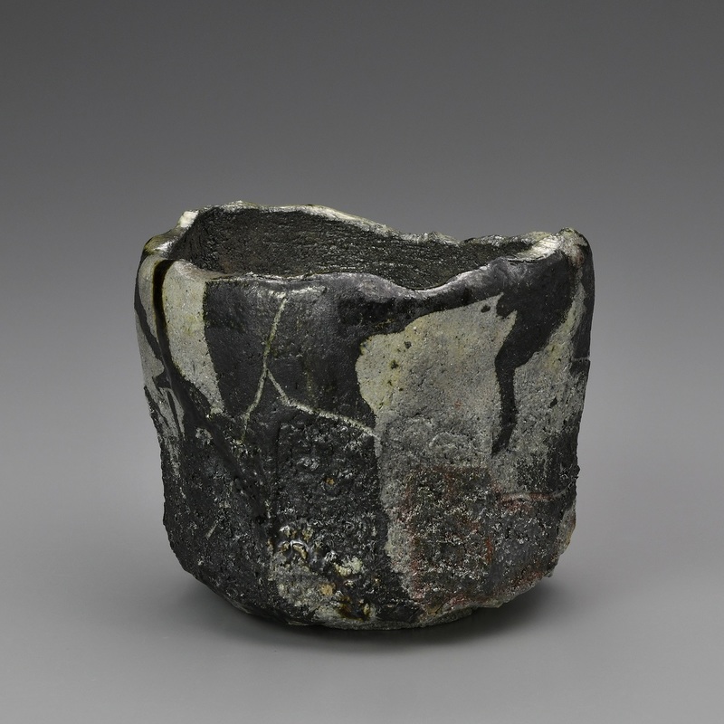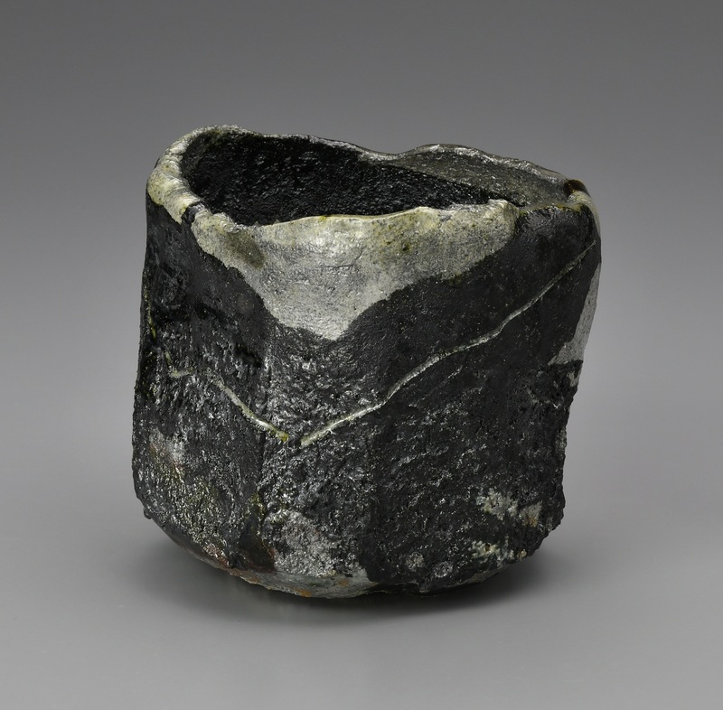 Tea bowl, yakinuki black Raku ware